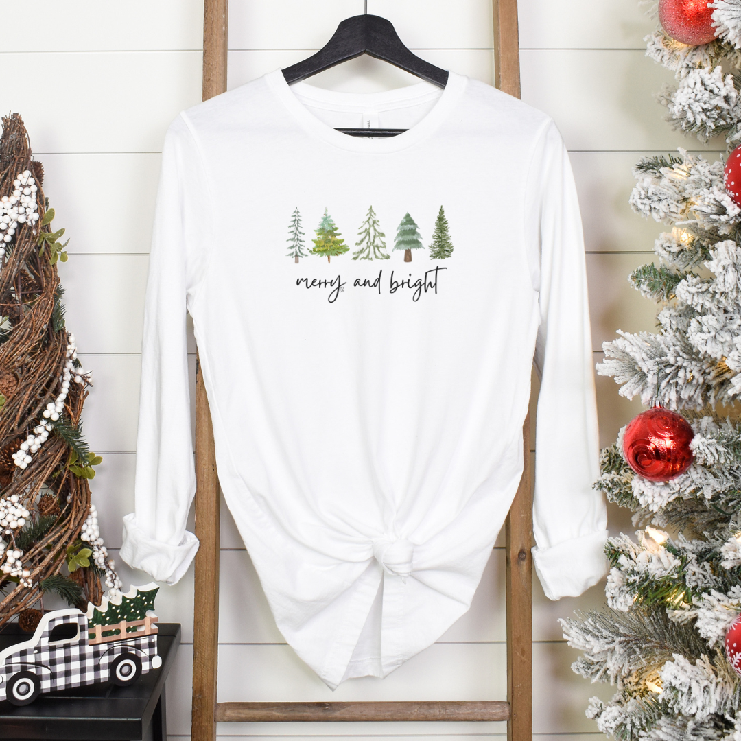 Long Sleeve Unisex Tee | Merry and Bright (Black Font)