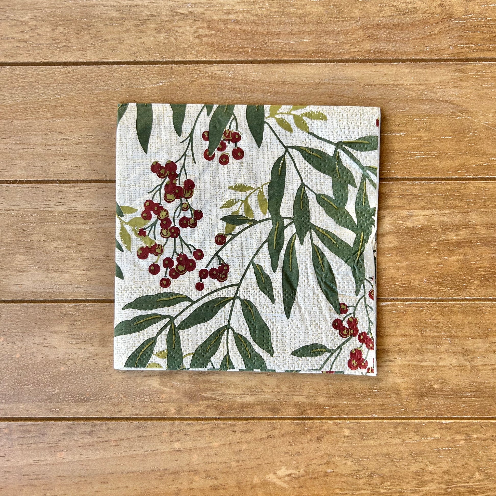 Choose our Berries and Greens cocktail napkin for your decoupage decor needs. Buy 4 of any of our single Napkins and only pay $5. The discount will be applied automatically. Simply add four individual napkins to your cart.