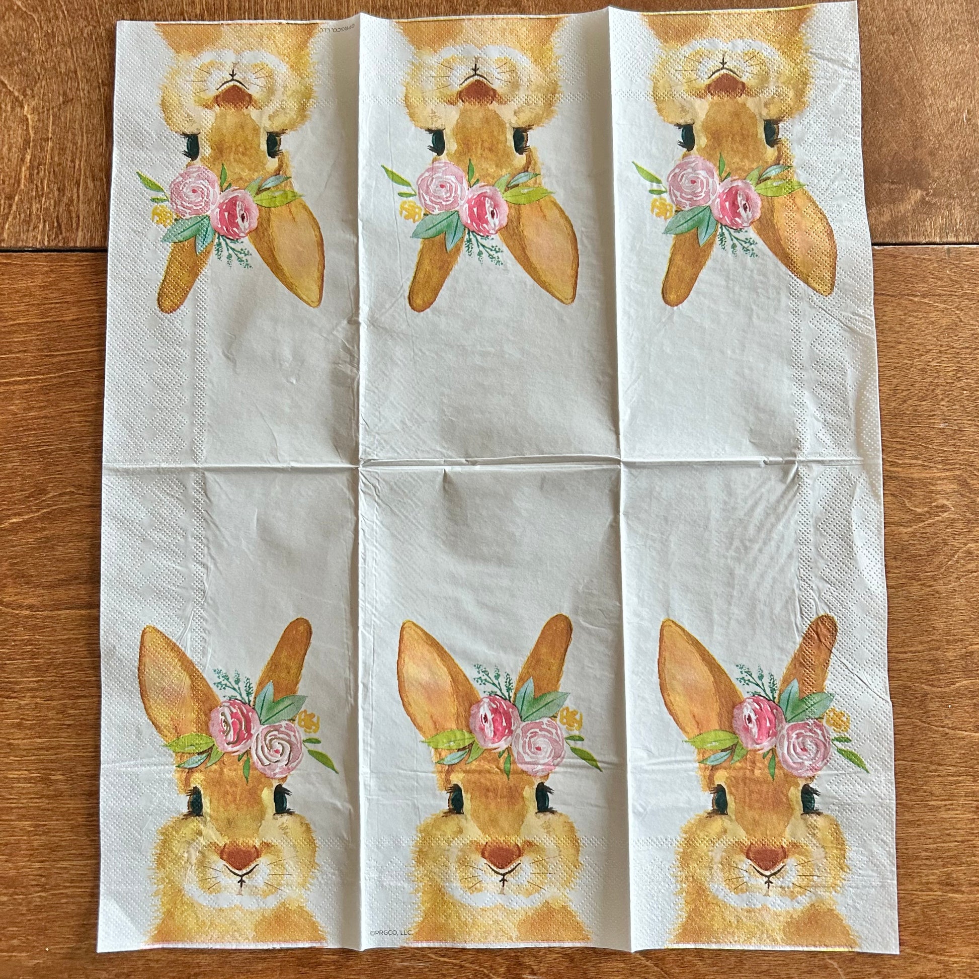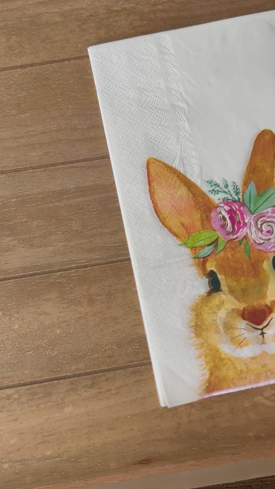 Choose our 4.5x8" Brown Bunny Head PAPER hand napkin for your decoupage decor needs. Buy 4 of any of our single Napkins and only pay $5. The discount will be applied automatically. Simply add four individual napkins to your cart.