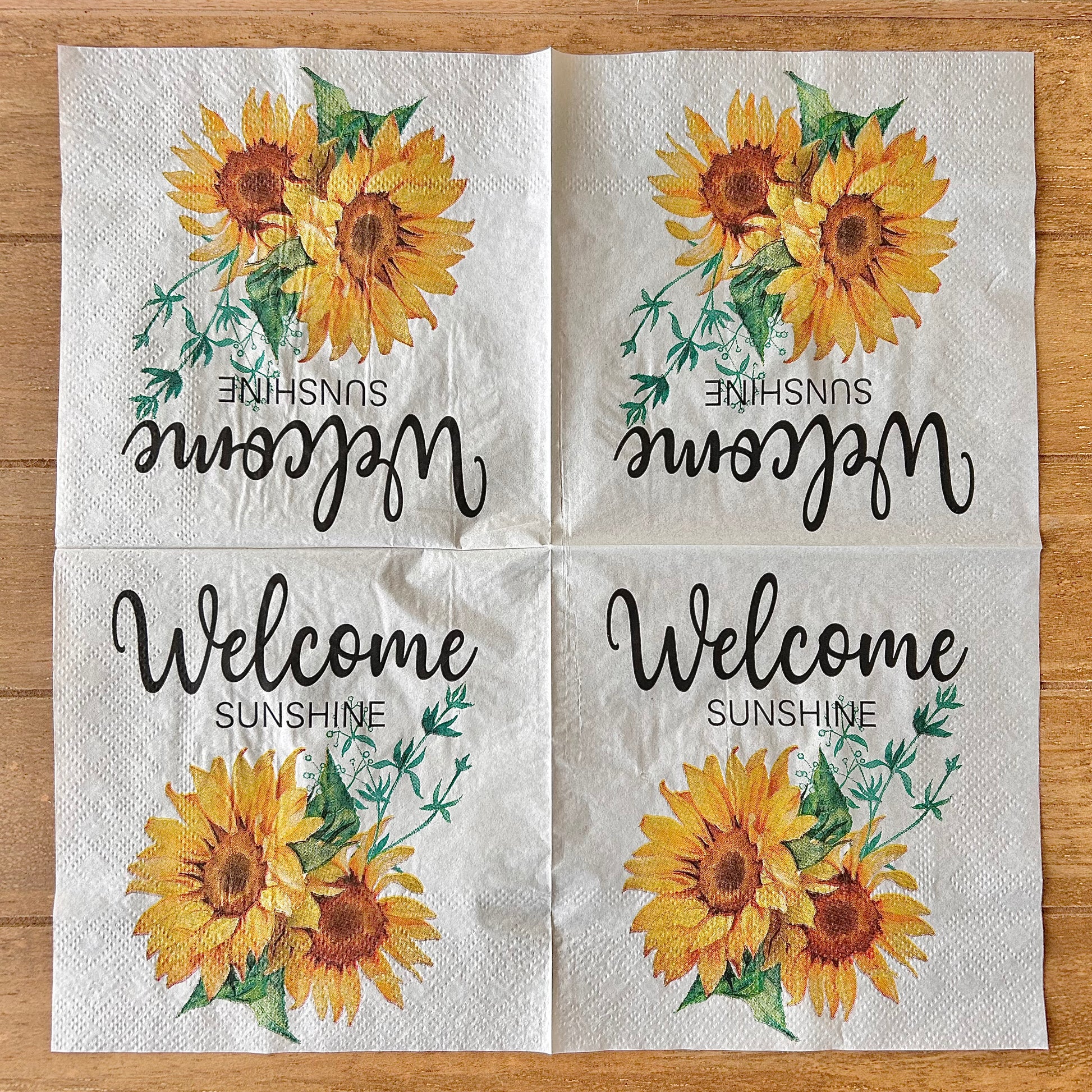 Choose our 5x5” Sunflower You Are My Sunshine PAPER napkin bundle for your decoupage decor needs. This bundle includes ONE of each design shown in this listing for a total of FOUR napkins.