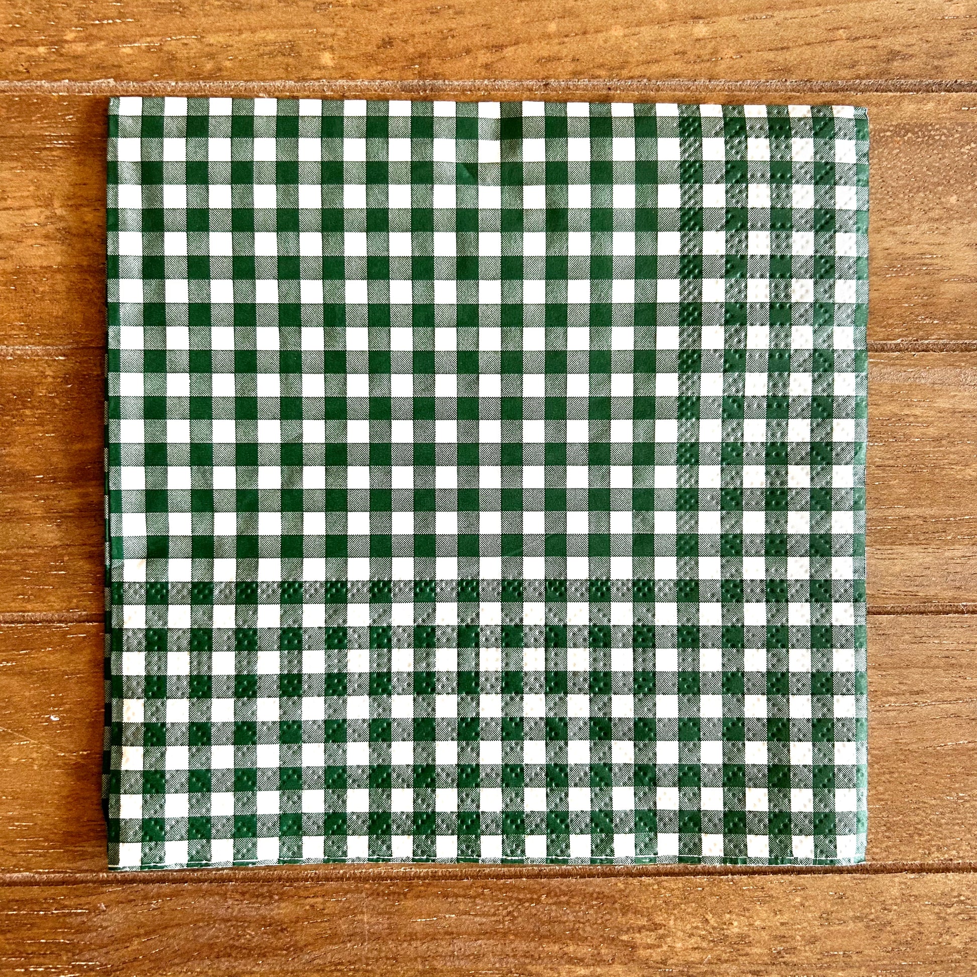 Choose our 6.5x6.5" Dark Green Gingham PAPER luncheon napkin for your decoupage decor needs. Buy 4 of any of our single Napkins and only pay $5. The discount will be applied automatically. Simply add four individual napkins to your cart.