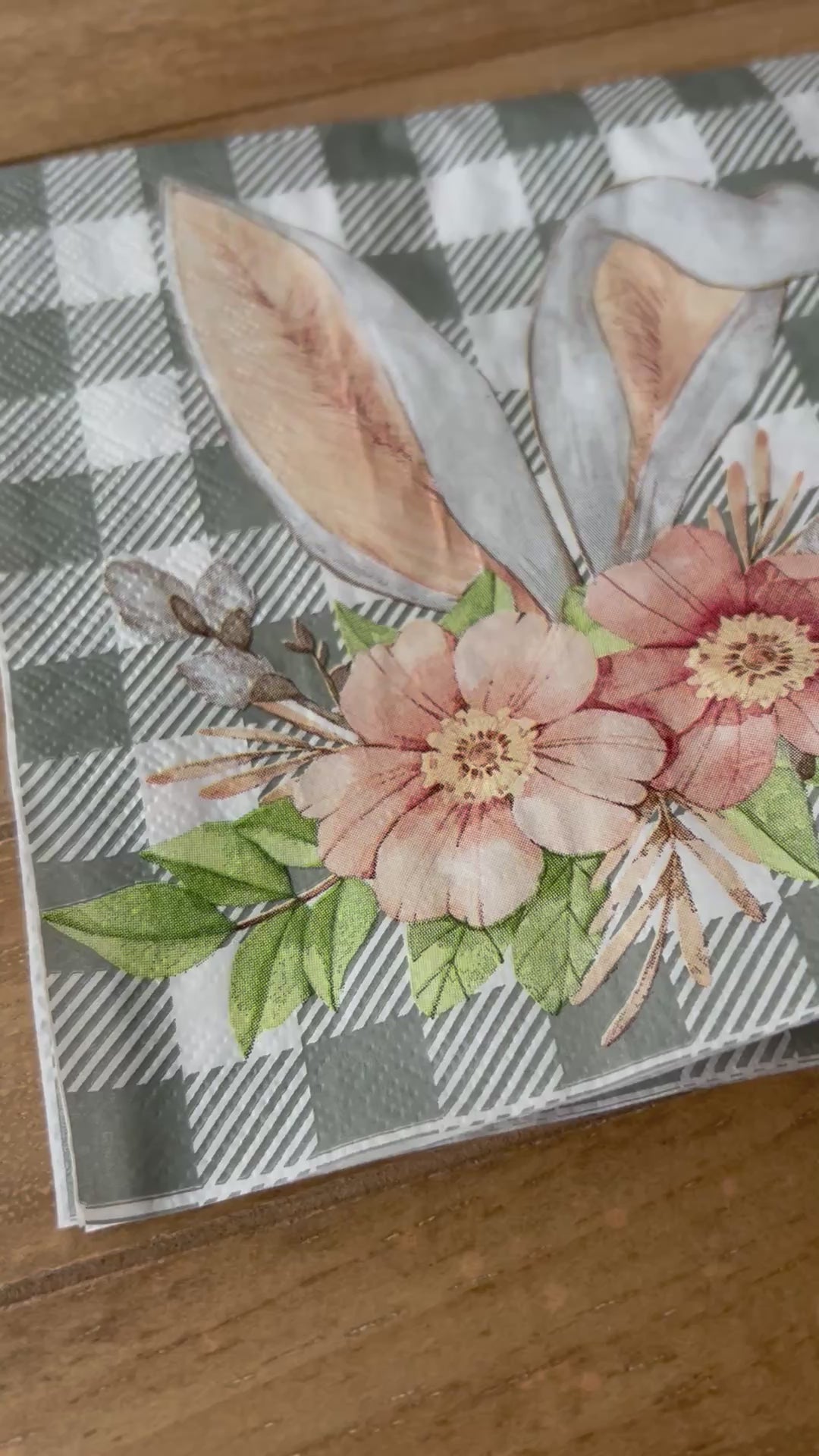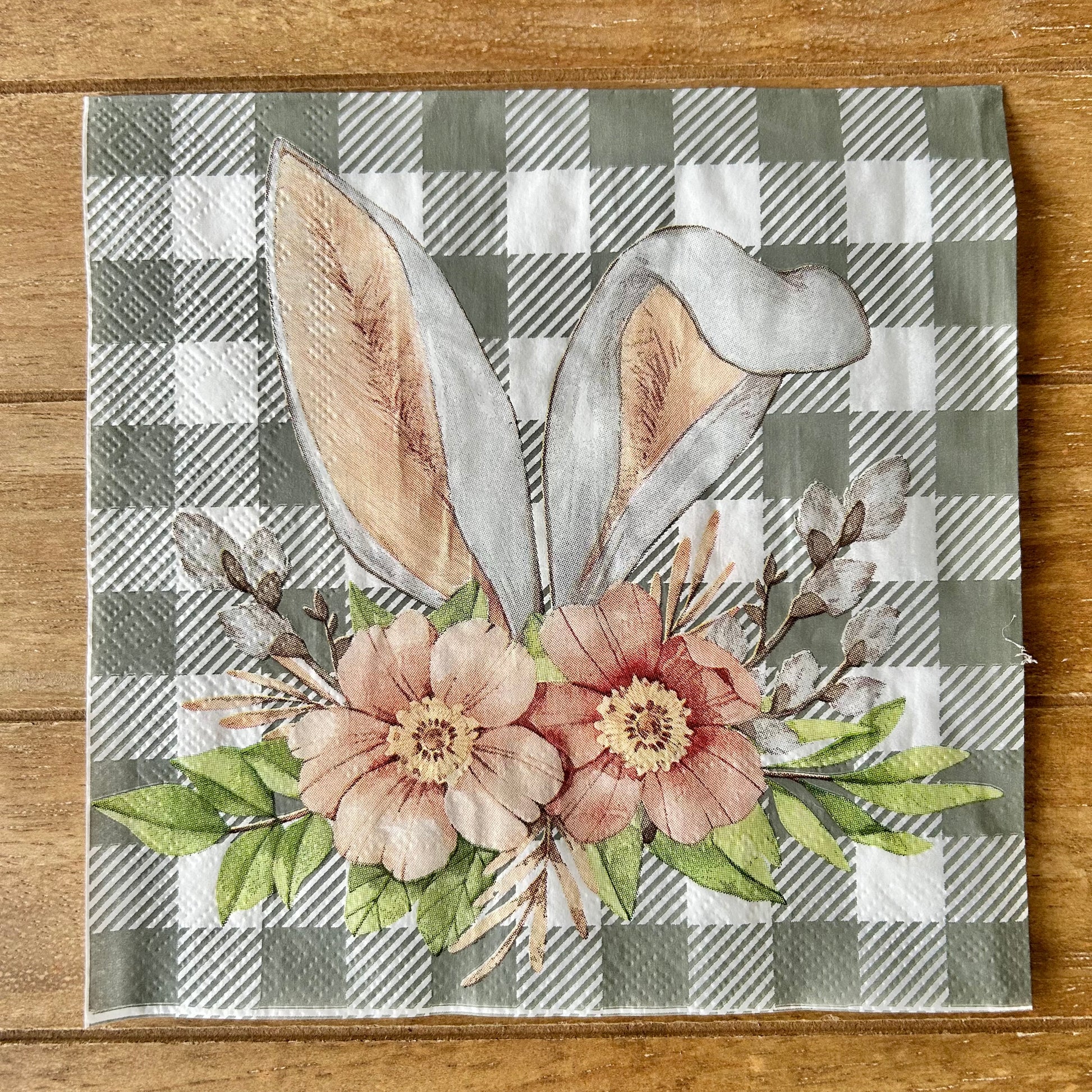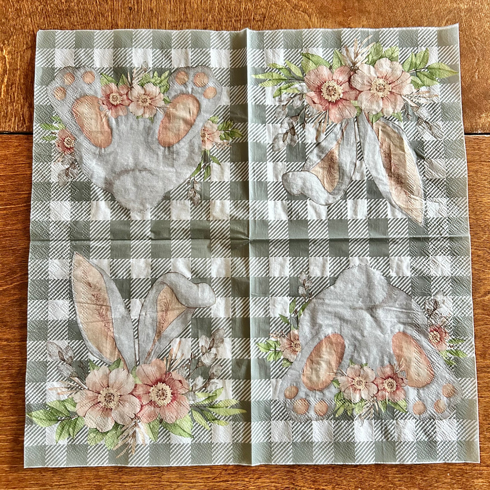 Choose our 6.5x6.5" Dual Print Bunny Ears and Butt PAPER luncheon napkin for your decoupage decor needs. Buy 4 of any of our single Napkins and only pay $5. The discount will be applied automatically. Simply add four individual napkins to your cart.