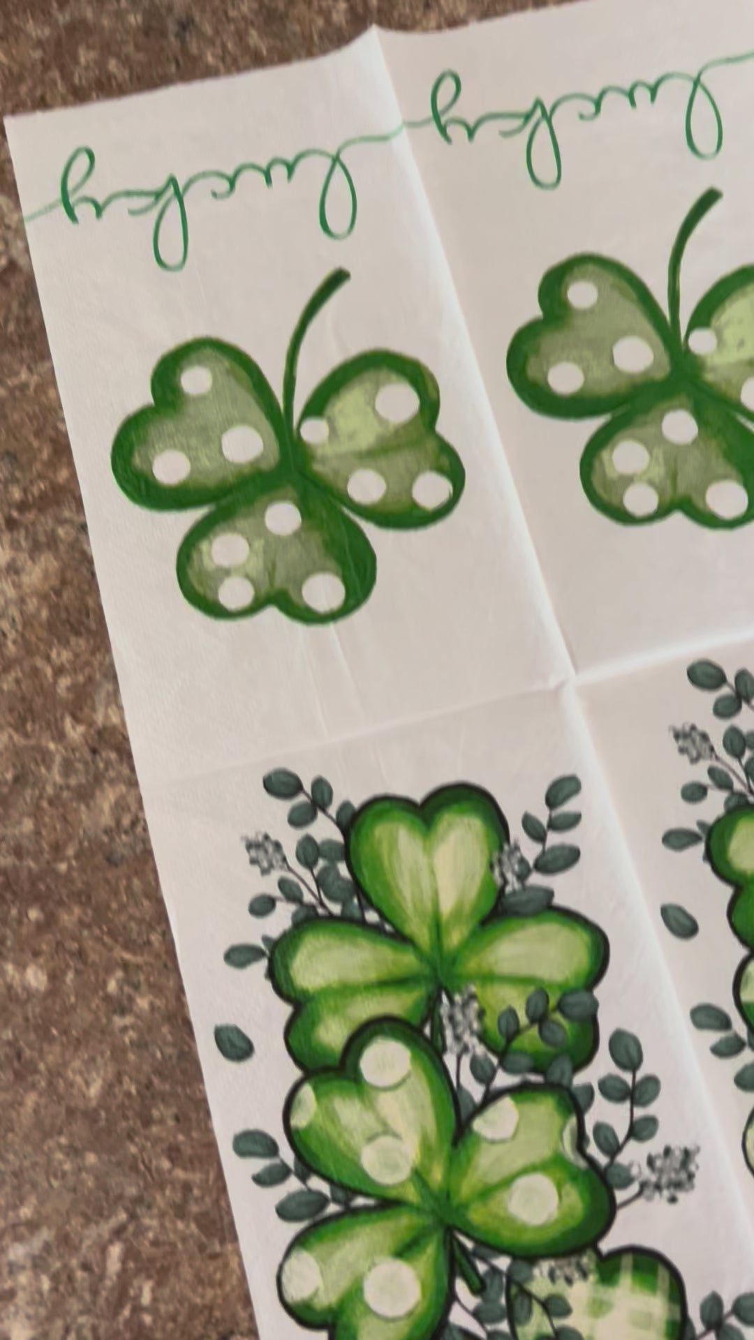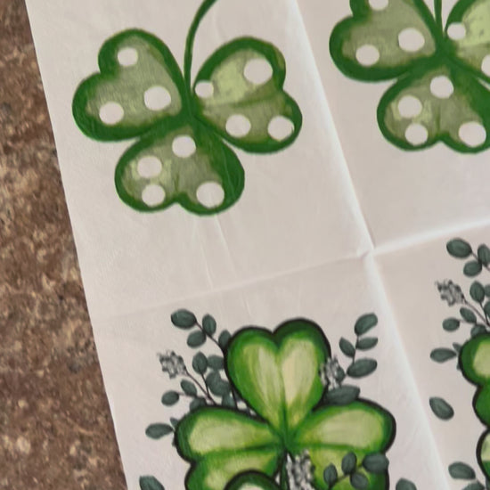 Choose this 4.5x8” Dual Print Shamrock Print PAPER hand napkin for your decoupage decor needs. Buy 4 of any of our single Napkins and only pay $5. The discount will be applied automatically. Simply add four individual napkins to your cart.