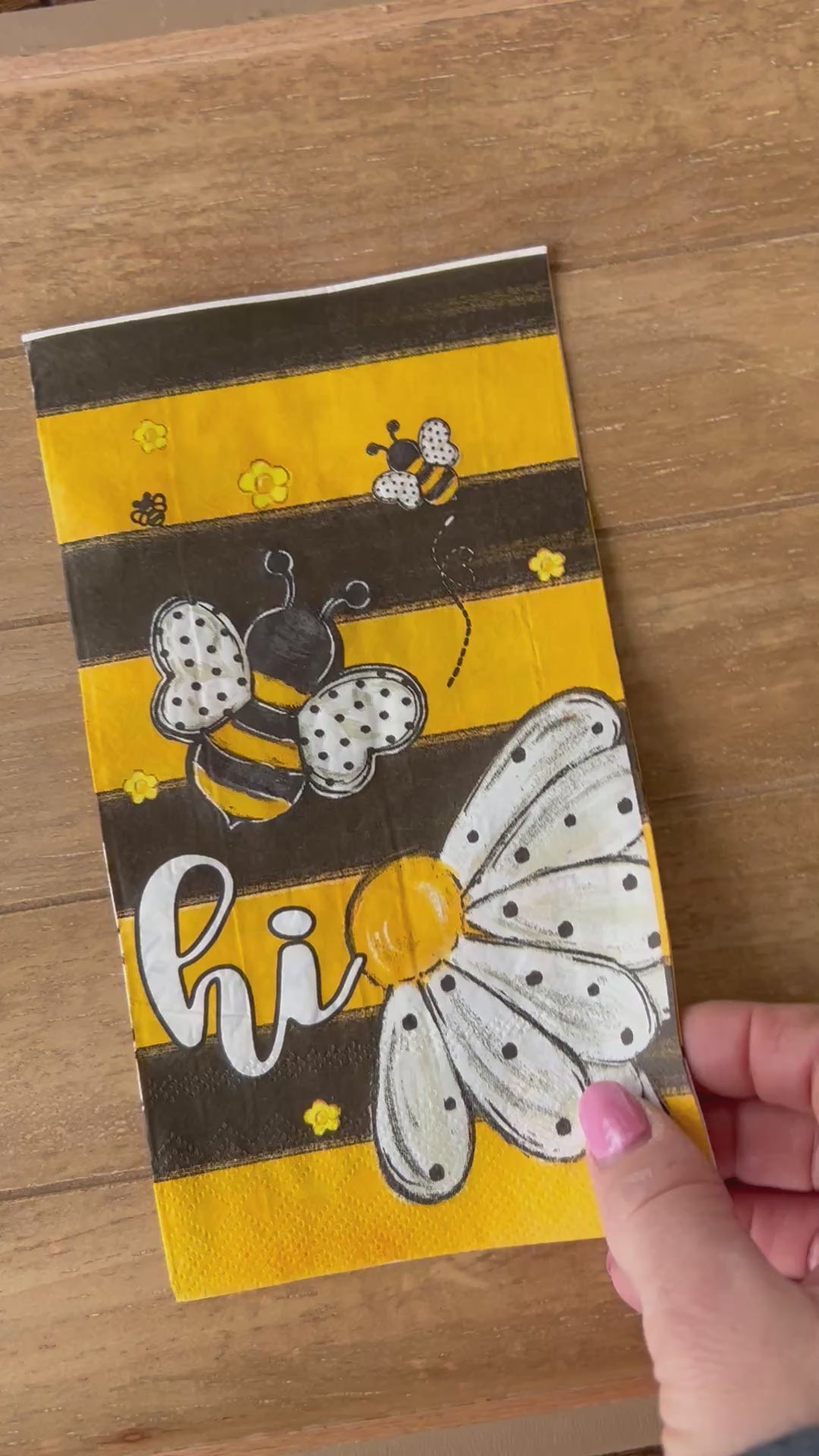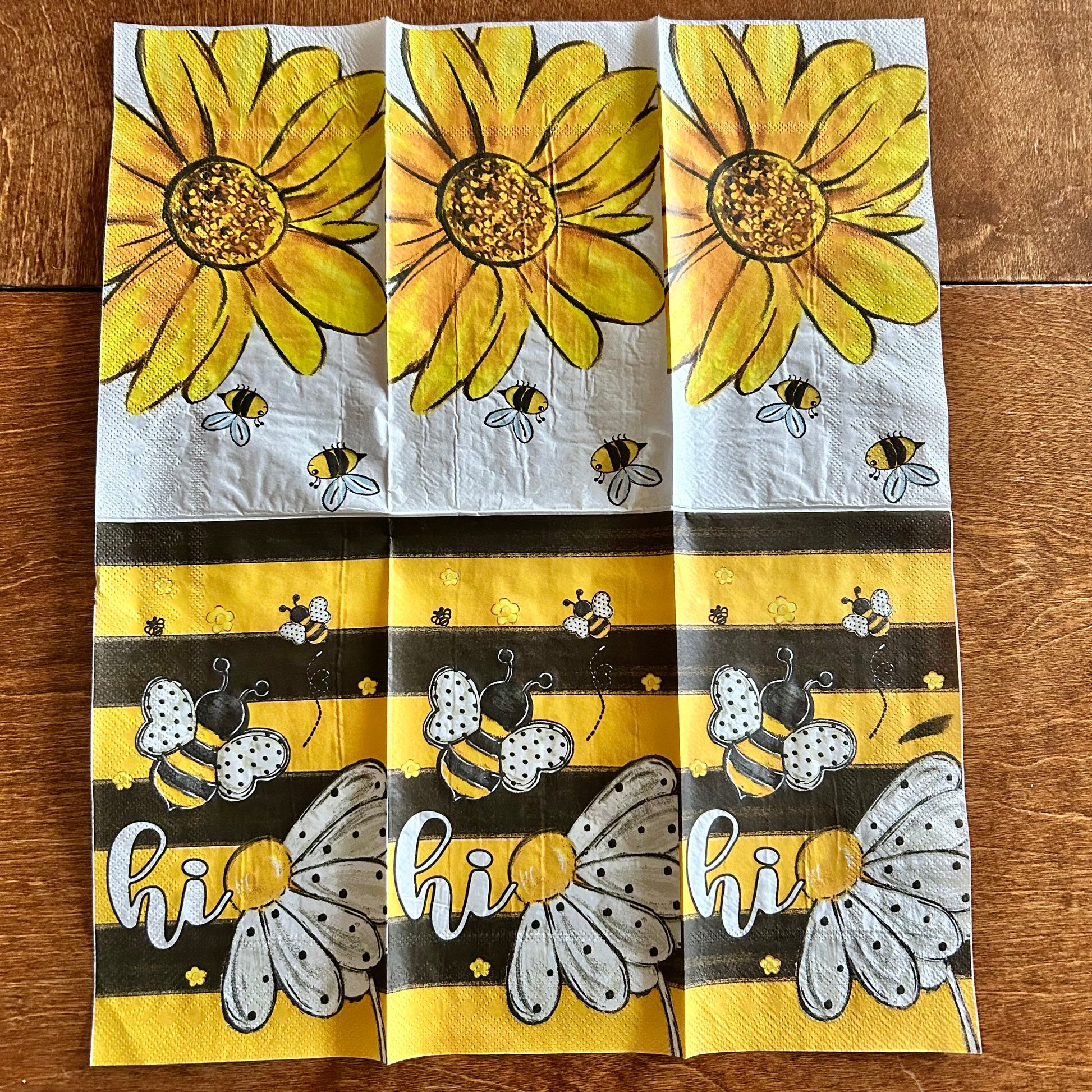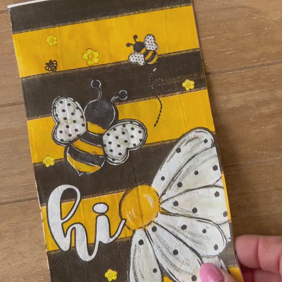 Choose our 4.5x8" Dual Print Sunflower Bee PAPER hand napkin for your decoupage decor needs. Buy 4 of any of our single Napkins and only pay $5. The discount will be applied automatically. Simply add four individual napkins to your cart.