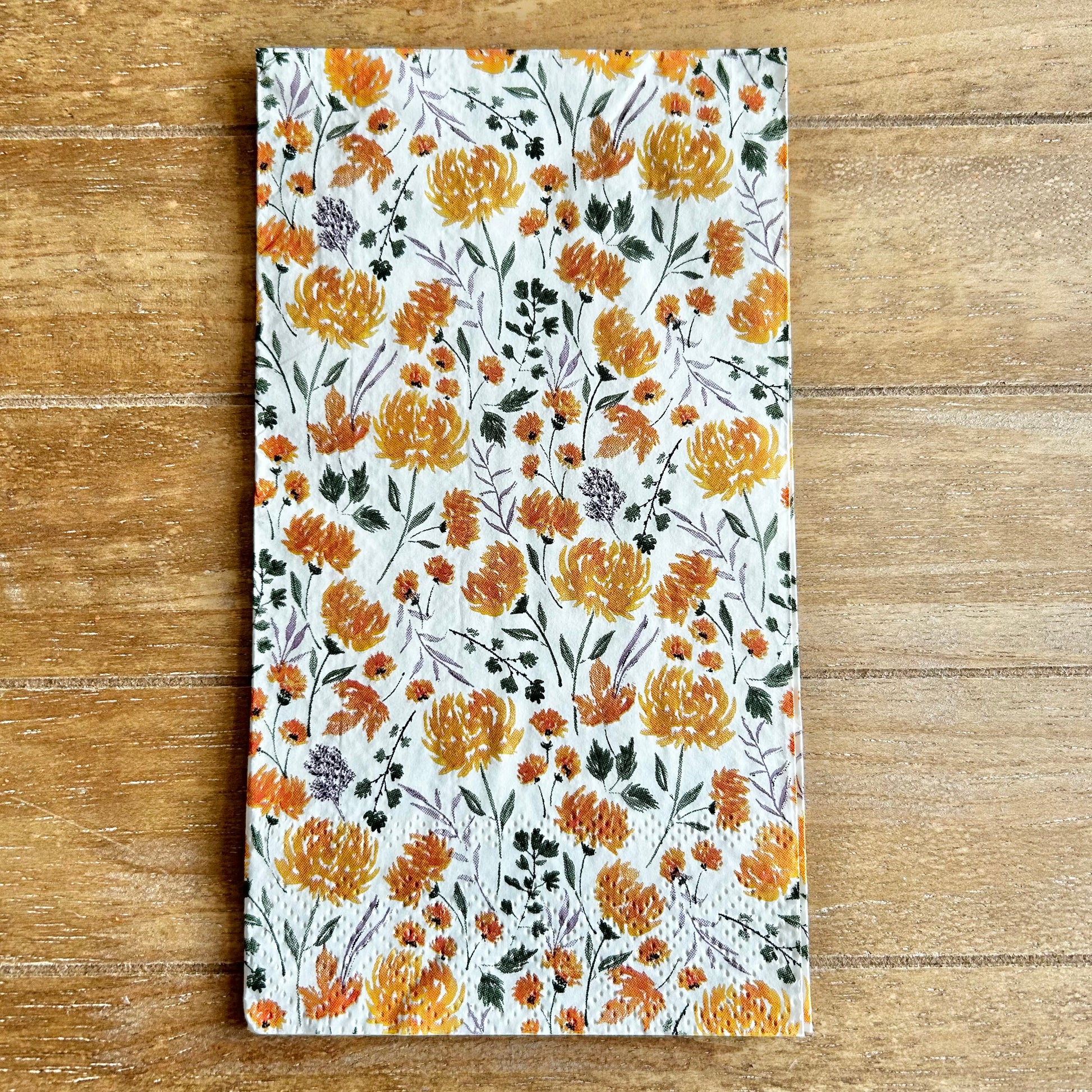 Choose this 4.5x8” Mustard Yellow Floral paper hand napkin for your decoupage decor needs. Buy 4 of any of our single Napkins and only pay $5. The discount will be applied automatically. Simply add four individual napkins to your cart.