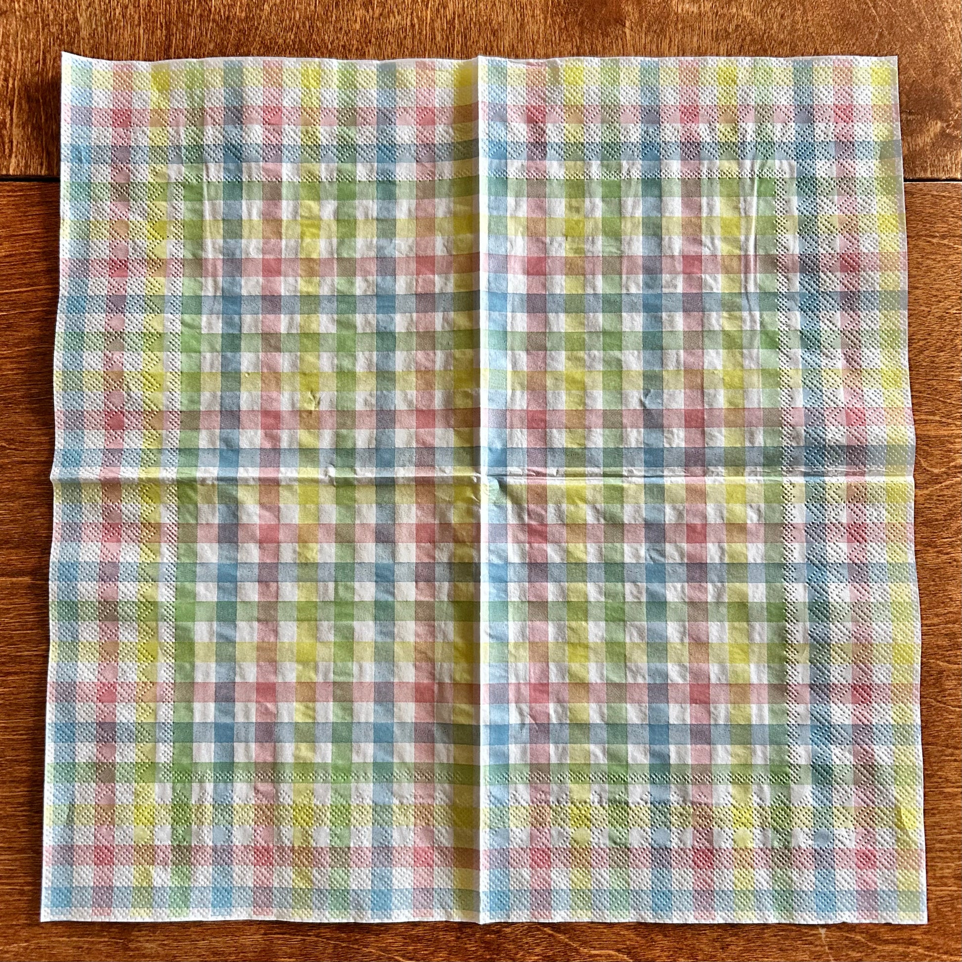 Choose our 6.5x6.5" Spring Pastel Checkpaper PAPER luncheon napkin for your decoupage decor needs. Buy 4 of any of our single Napkins and only pay $5. The discount will be applied automatically. Simply add four individual napkins to your cart.