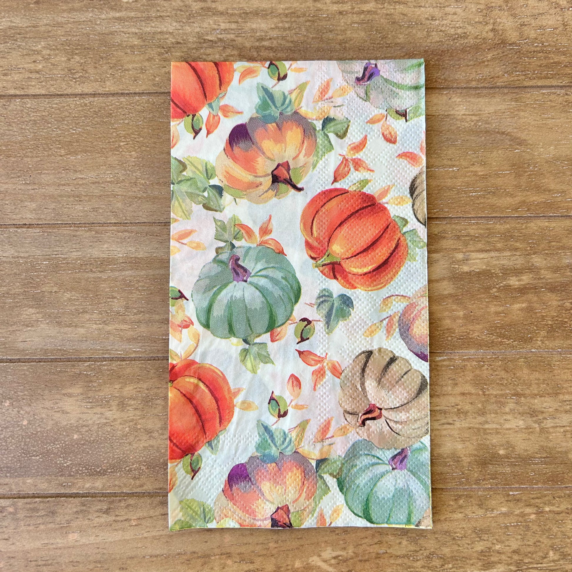 Choose our Traditional Fall Pumpkins hand napkin for your decoupage decor needs. Buy 4 of any of our single Napkins and only pay $5. The discount will be applied automatically. Simply add four individual napkins to your cart.