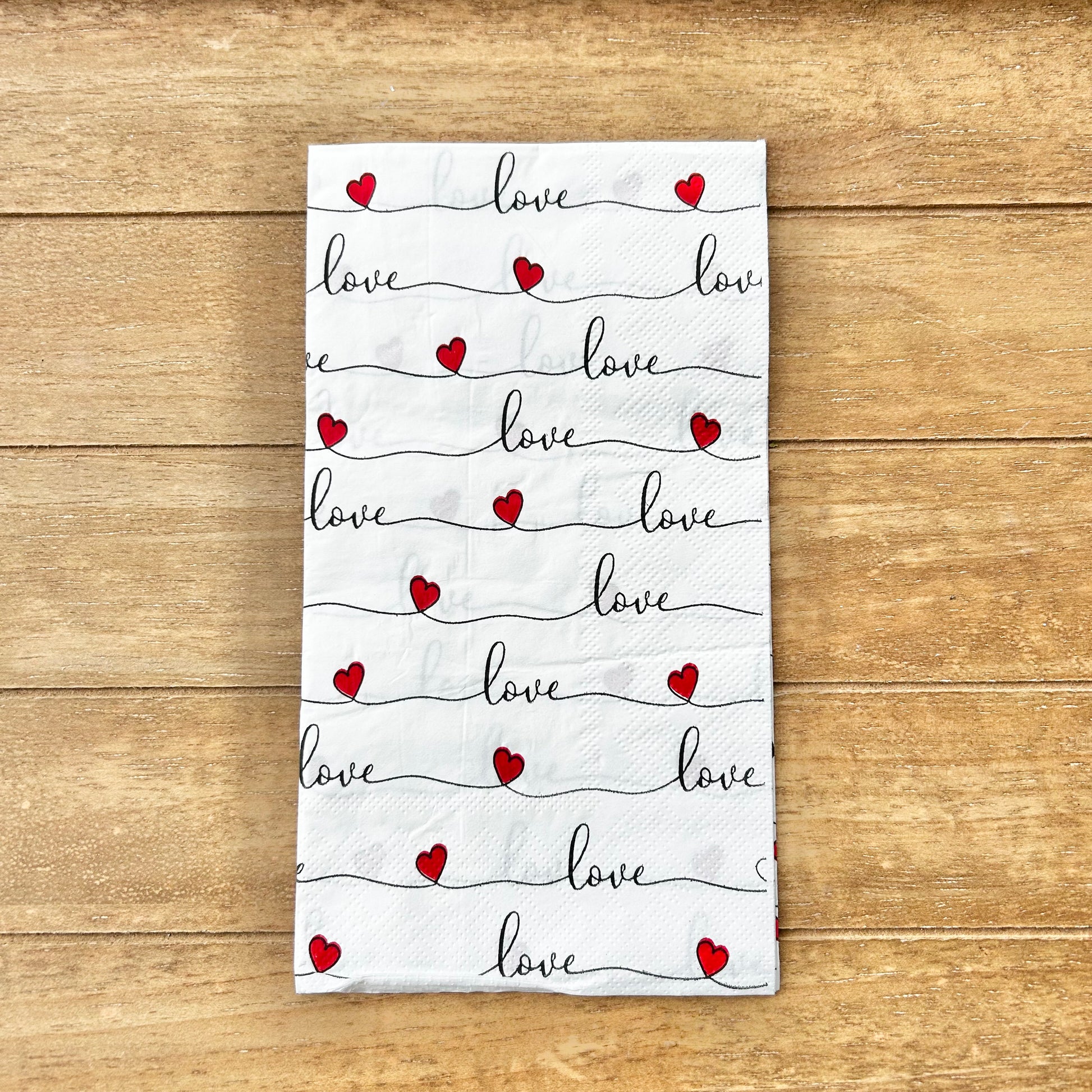 Choose this 4.5x8” Valentine Love in Script paper hand napkin for your decoupage decor needs. Buy 4 of any of our single Napkins and only pay $5. The discount will be applied automatically. Simply add four individual napkins to your cart.
